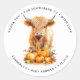 Pegatina Redonda Cute Highland Cow Autumn Pumpkins Baby Shower