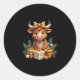 Pegatina Redonda Cute Highland Cow Christmas Santa Highland Cow Lov
