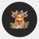Pegatina Redonda Cute Highland Cow Christmas Santa Highland Cow Lov