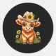 Pegatina Redonda Cute Highland Cow Sunflower Farm Scottish Highland