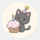 Pegatina Redonda Cute Kawaii Black Cat Birday Party