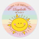 Cute Kawaii Pequeño Sunshine Bebé Primer Cumpleaños Clásico Pegatina Redondo