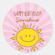 Cute Kawaii Little Sunshine Pink Happy Birday Classic Round Pegatina