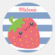 Pegatina Redonda Cute Kawaii Strawberry Striped Personalizado