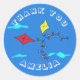 Pegatina Redonda Cute Kites Red Yellow Name Kids Birday Gracias