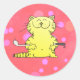 Pegatina Redonda Cute Kitty Golfer Red Back Ground