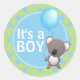 Este diseño dulce se coordina con una invitación a ducha de bebé coincidente. Cuenta con un lindo oso koala sosteniendo un globo azul y puntos de polka azul sobre un fondo verde claro. Puede cambiar el fondo verde al color de su elección seleccionando el botón "Personalizar" y eligiendo otro color de fondo. Recibe aquí la invitación a la ducha de bebé que coincida:
