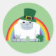 Cute Leprechaun Yeti con un arco iris en el fondo