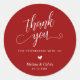 Modern Wedding Minimalist Thank You Gifts Classic favor Round Sticker, in classy script, cute little heart, with bride and groom name and wedding date, in burgundy wine deep red theme.