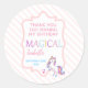 Pegatina Redonda Cute mágico Unicornio Rosa Gracias