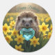 Pegatina Redonda Cute March Hedgehog with Aquamarine Heart