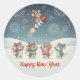 Pegatina Redonda Cute Mice Happy New Year Fireworks