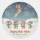 Pegatina Redonda Cute Mice Happy New Year Fireworks