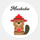 Pegatina Redonda Cute Muskoka Canada Beaver con Gorra rojo