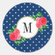 Pegatina Redonda Cute Navy puntos azules rojo acuarela Floral Monog