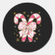 Pegatina Redonda Cute Nk Coquette Bow Candy Cane Christmas Girls Wo
