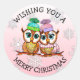 Pegatina Redonda Cute Owl Pareja Feliz Navidad