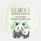 Pegatinas de negocios con un lindo ilustracion acuarela con una madre blanca y negra y un oso panda bebé abrazándose. Mamá está sosteniendo su cachorro entre algunos tallos de bambú verde.