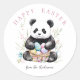 Cute Panda Bear Rustic Easter botanicals Easter pegatina de la ronda de Pascua. acuarelas rústicas y lino tipo panda negro y blanco con hermosos botánicos de primavera y huevos de Pascua.