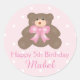 Pegatina Redonda Cute Pastel Cinta Rosa Teddy Bear Chica Cumpleaños