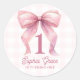Cute Pink Bow Coquette Primer cumpleaños Pegatina redondo clásico