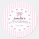 Pegatina Redonda Cute Pink Bow First Birthday