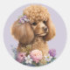 Pegatina Redonda Cute Poodle Dog Floral Morado Giro Acuarela