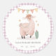 Pegatina Redonda Cute Purple Plaid Cactus Boho Llama Baby Shower
