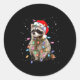 Pegatina Redonda Cute Raccoon Christmas Tree Lights Pajama Raccoon