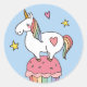 Pegatina Redonda Cute Rainbow Unicorn en tarta de cumpleaños