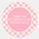 Pegatina Redonda Cute rosa y blanco a cuadros Cumpleaños Gracias