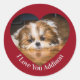 Pegatina Redonda Cute shih tzu love Valentine heart photo
