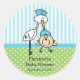 Pegatina Redonda Cute Stork Baby Boy Baby Shower
