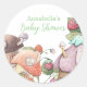 Este mágico y encantador cuento de hadas inspirado en la ducha de bebé pegatina cuenta con un adorable tema del jardín de hadas de fresa. Al fondo del jardín se encuentran tres bonitas casas de setas. Las fresas crecen alrededor de las pequeñas casas.