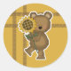 Pegatina Redonda Cute Sunflower Teddy Bear