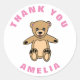 Cute Teddy Oso Niños Rosa Cumpleaños Gracias Pegatina. Este pegatina viene con un lindo oso de peluche, Gracias texto y el nombre de un niño. Es perfecto para las celebraciones de cumpleaños de los niños. Personalice al pegatina con el nombre del niño.