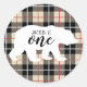 Pegatina Redonda Cute Thompson Camel Plaid Bear Primer Fiesta de cu