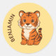 Pegatina Redonda Cute Tiger Cub Custom Name Yellow