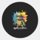 Pegatina Redonda Cute Turtle Wearing Sunglasses Paint Splash Sea An