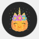 Pegatina Redonda Cute Unicorn Calabaza Halloween Día de Acción de G