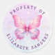 Pegatina Redonda Cute Watercolor PInk Butterfly