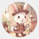 Pegatina Redonda Cute White Rabbit Wonderland Whimsical Timekeeper
