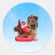 Pegatina Redonda Cute Yorkshire Terrier Merry Christmas