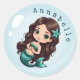 Pegatina Redonda Cuto de la sirena marrón de pelo verde personifica