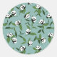 Pegatina Redonda Cuto jugando al panda en el patrón de jardín verde
