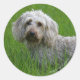 Pegatina Redonda Dachshund estándar de cabello alambrado en hierba