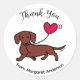 Red Smooth Haired Dachshund Sonriente Heart Gracias Pegatina de Ronda Clásico para los fans de Doxie. Personalizado de Perro Cute creada por Naomi Ochiai de Japón. Doxie está entregando un globo de corazón rojo a alguien.