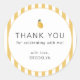 Dainty tema del limón, fiesta de cumpleaños, gracias a favor pegatina. Características, limón diminuto y borde de patrón de rayas amarillas de coordinación.