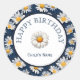 Pegatina Redonda Daisies on Blue Denim Birthday