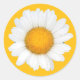 Daisy amarillo y blanco brillante y alegre en un pegatina de fondo amarillo a juego